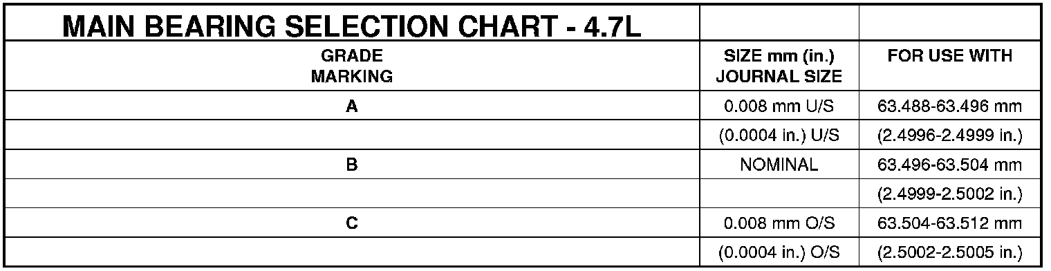 Main Bearing Journal Diameter 63.488 - 63.512 mm (2.4996 - 2.5005 in.)