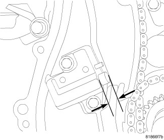 2. Measure the distance from the tensioner body and the edge of the chain guide as shown.