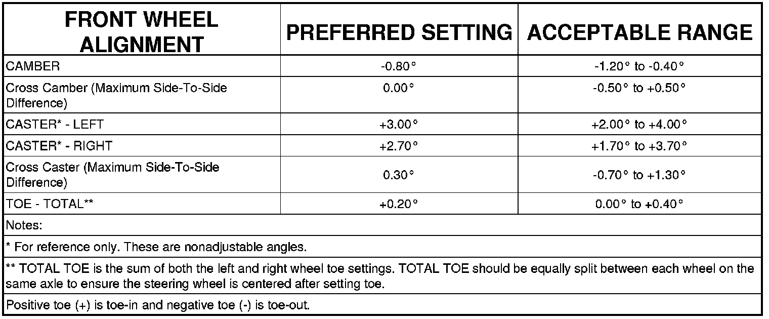 NOTE: All wheel alignments are to be set with the vehicle at curb height. Wheel Alignment Procedures