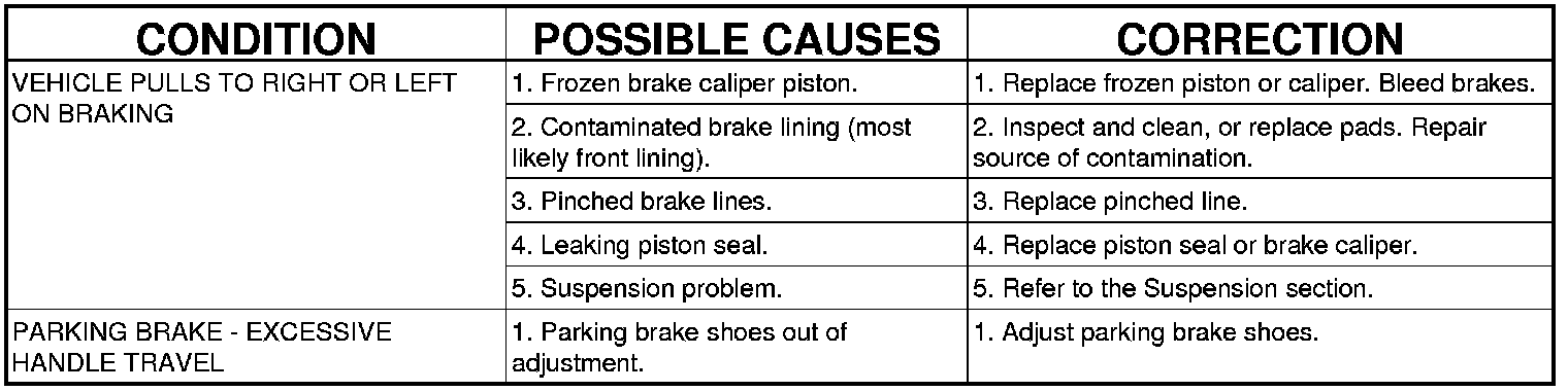 BASE BRAKE SYSTEM DIAGNOSIS CHARTS