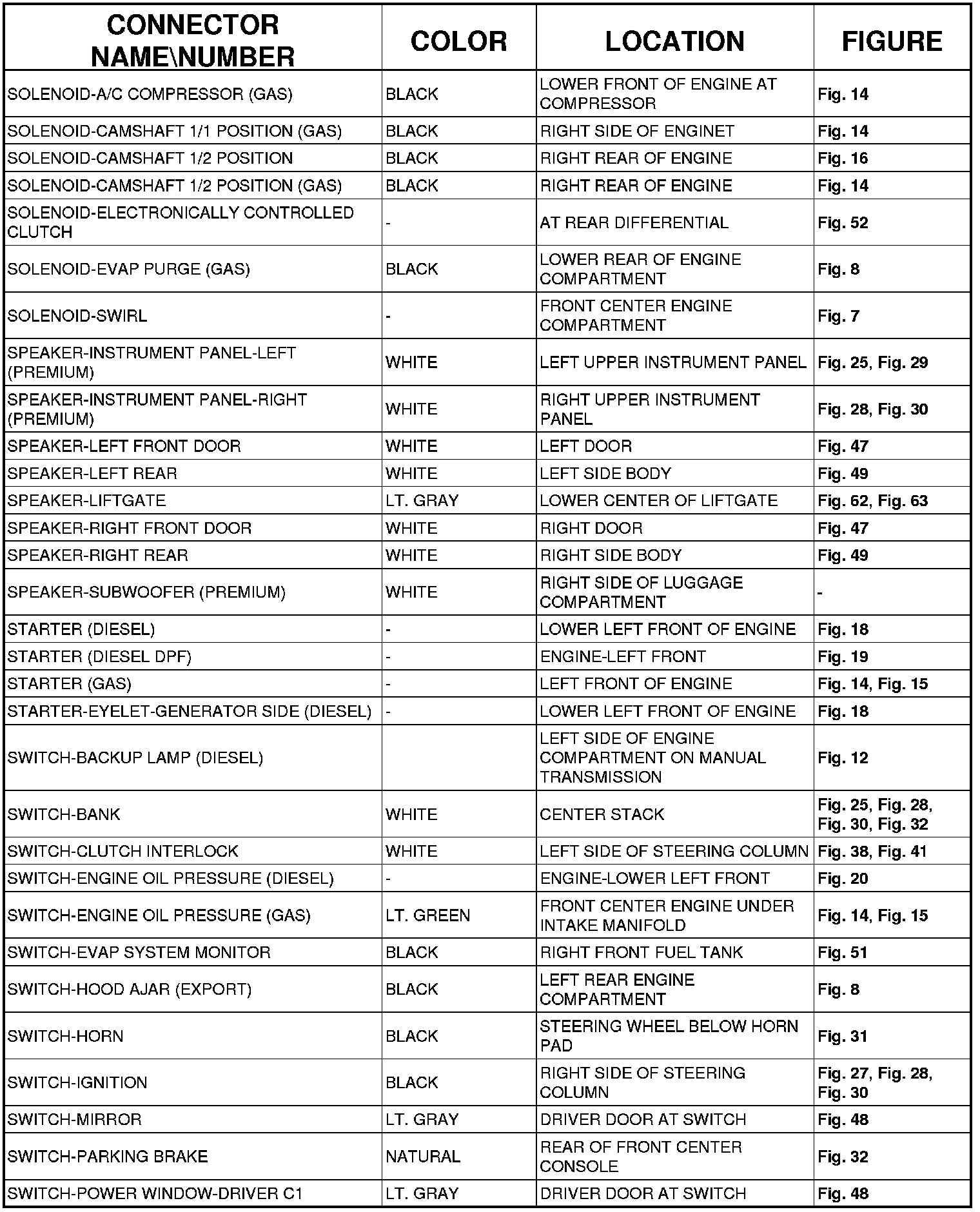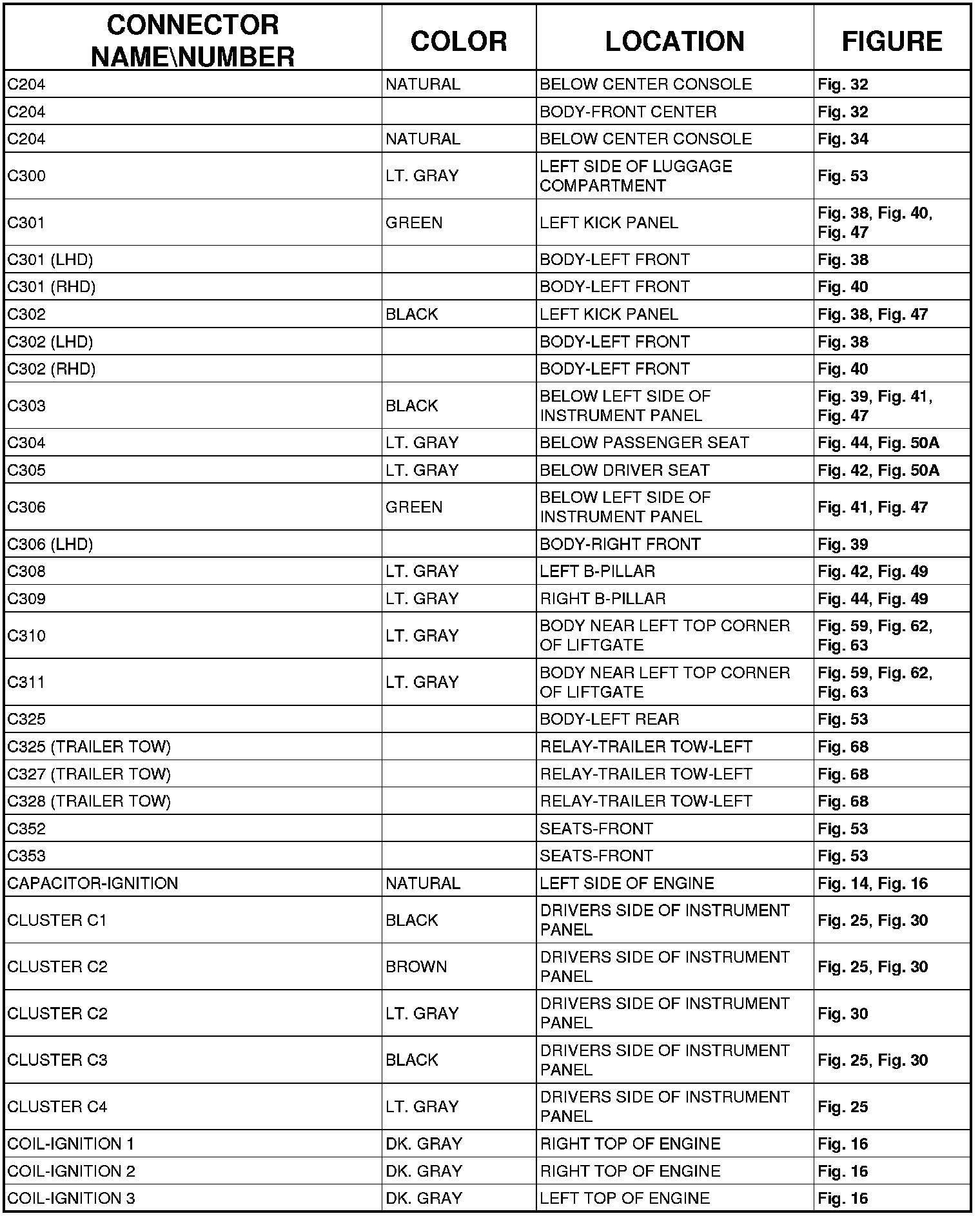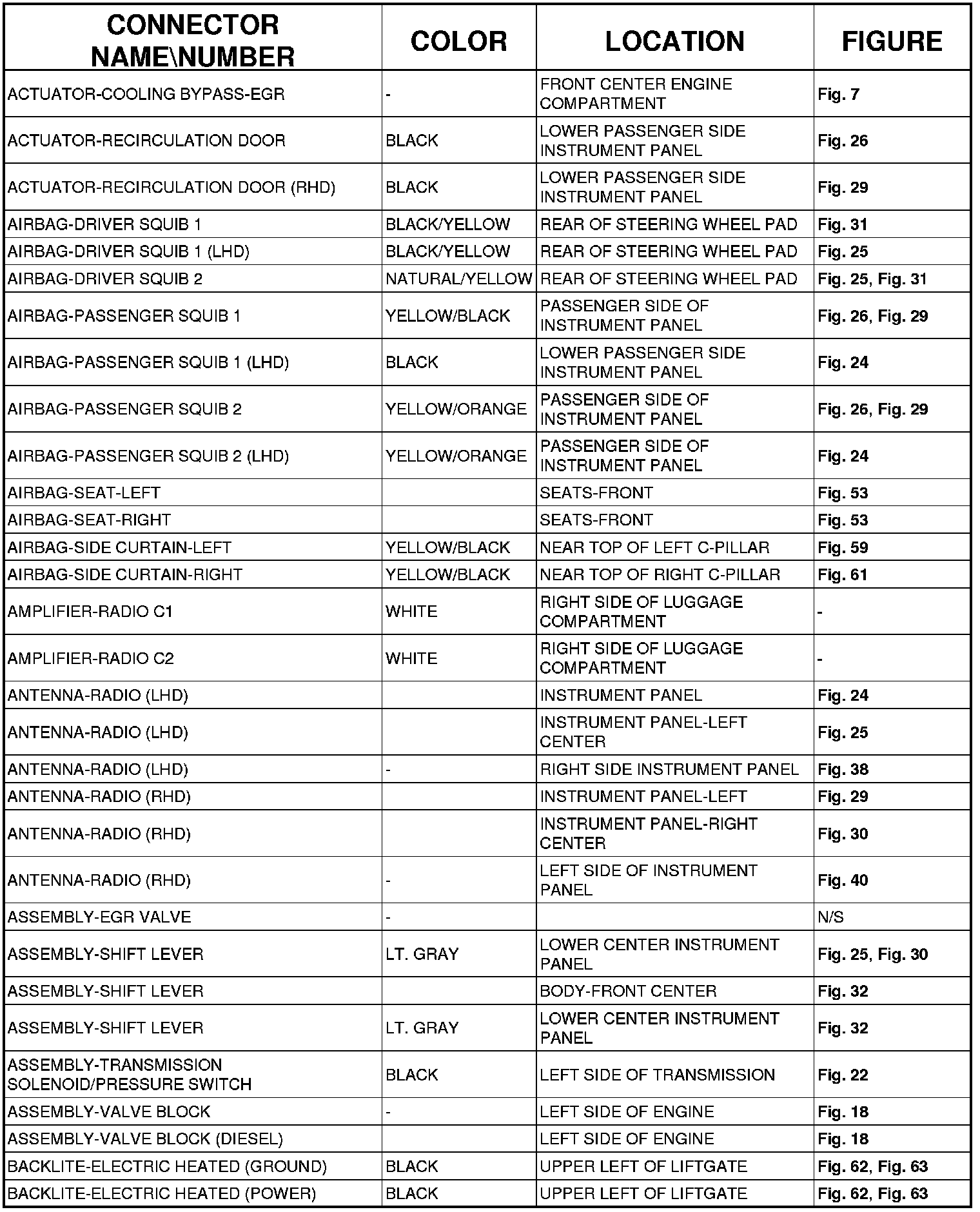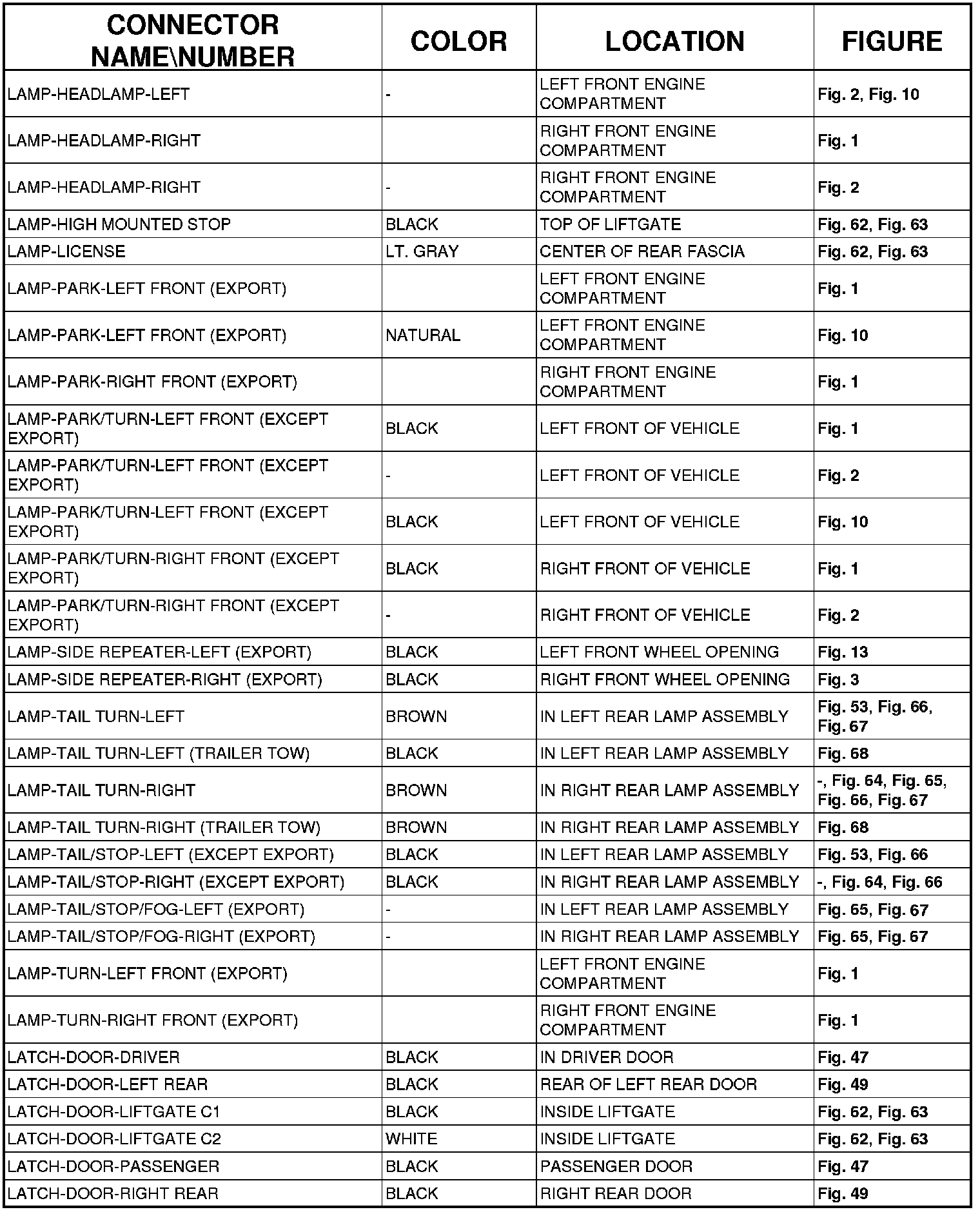 If a link on the index chart to a figure is not provided, that means that the connector and/or figure in question does NOT apply to the vehicle model selected.