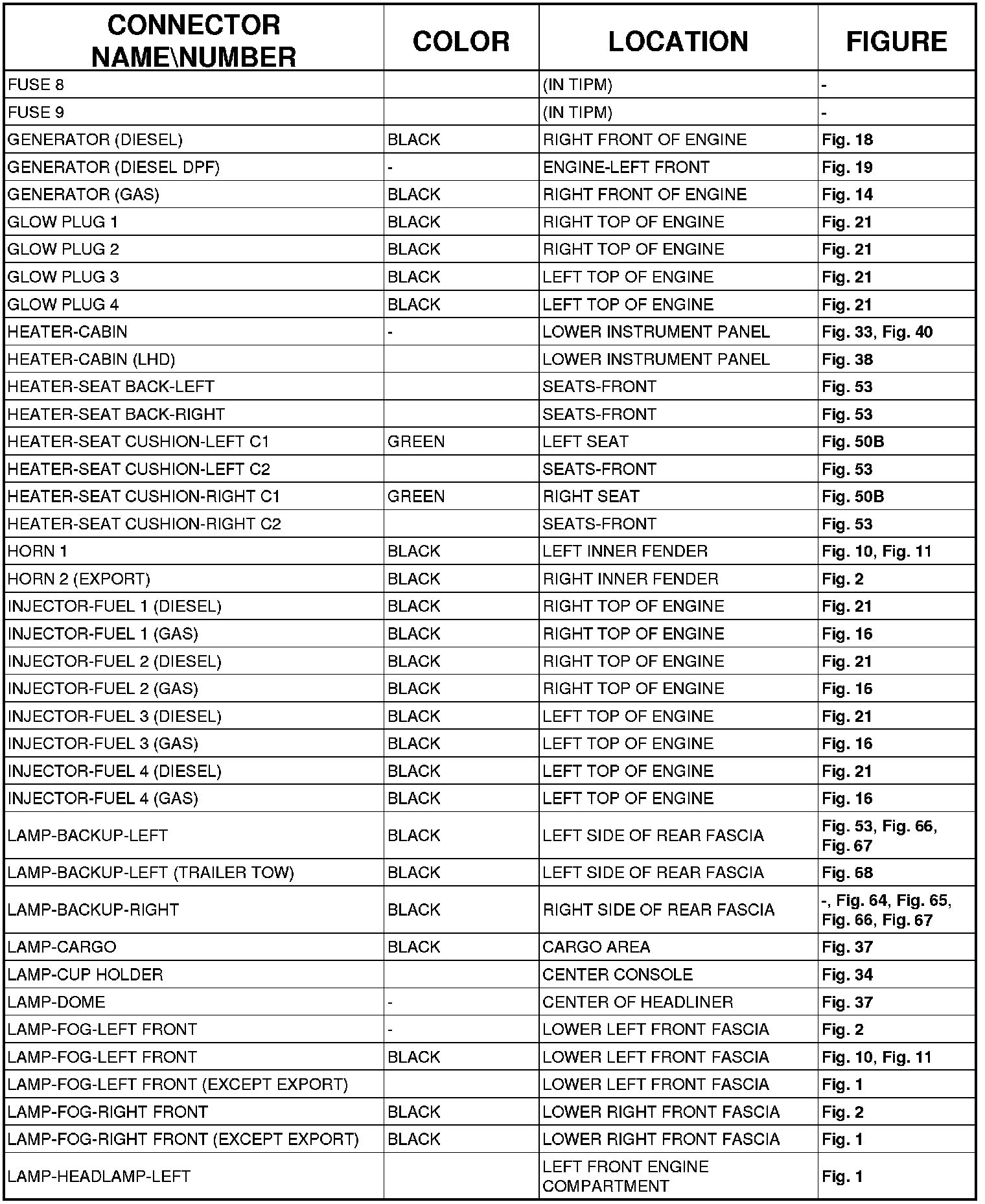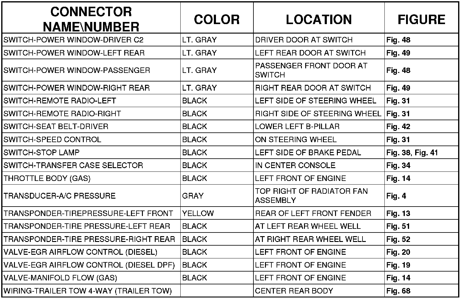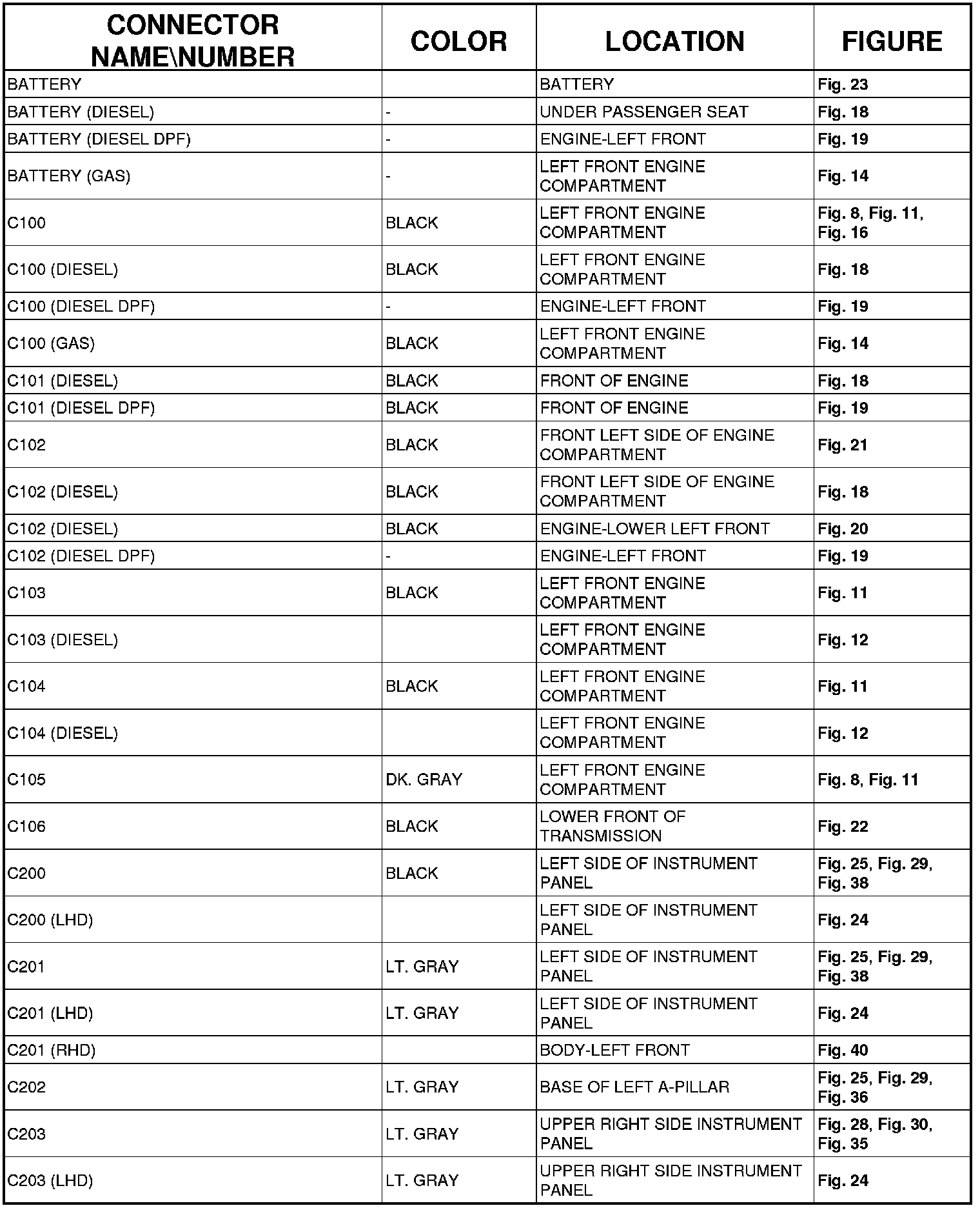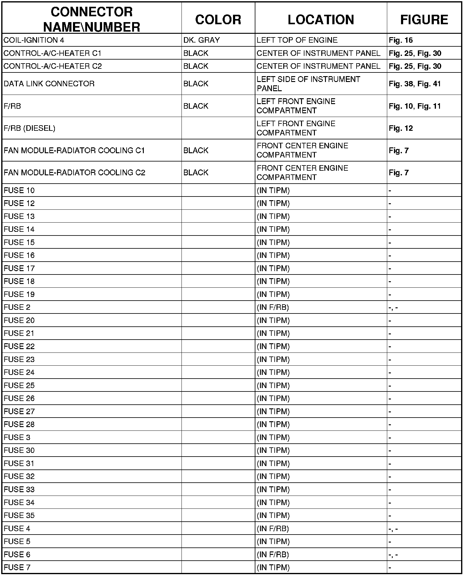 If a link on the index chart to a figure is not provided, that means that the connector and/or figure in question does NOT apply to the vehicle model selected.