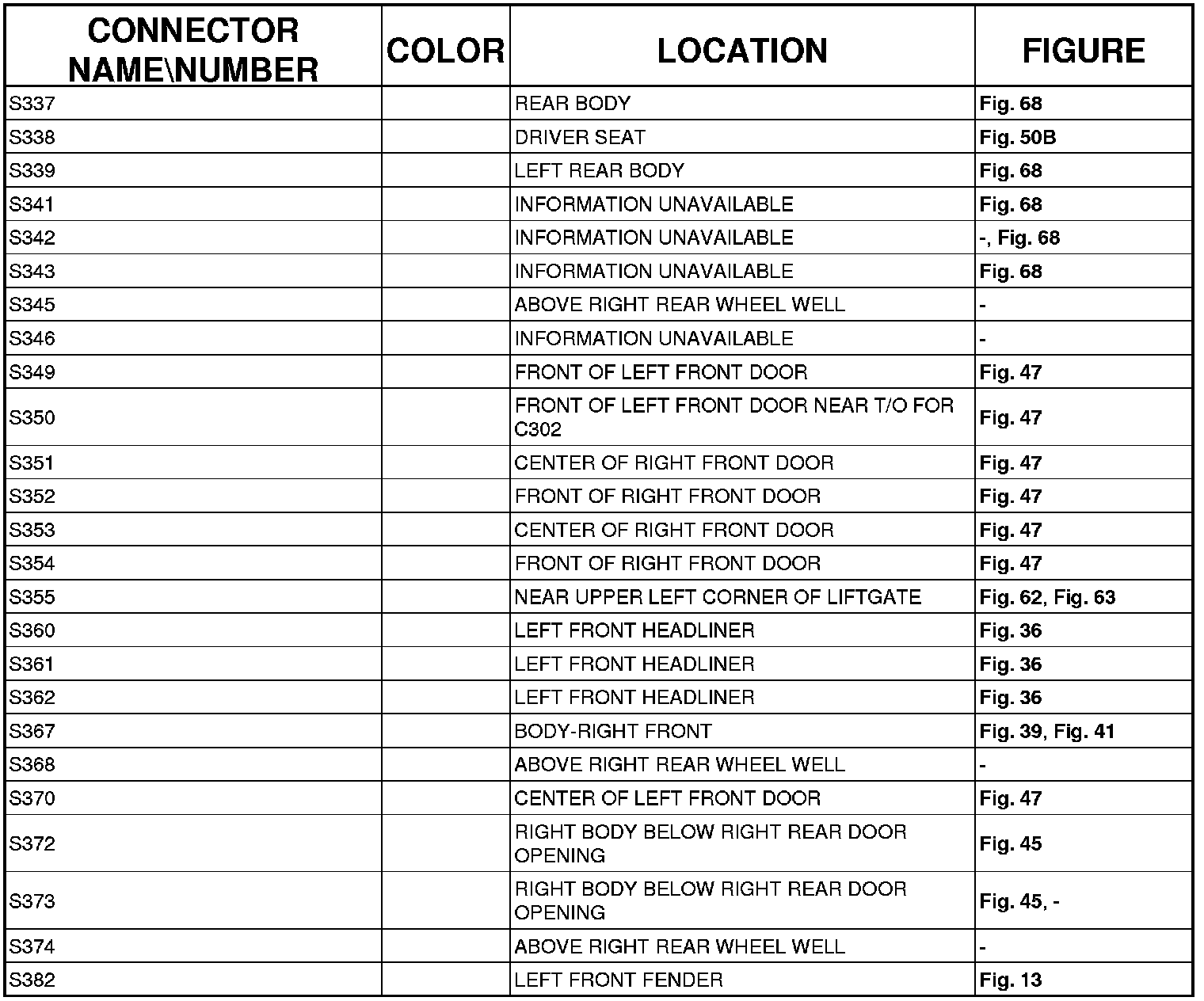 If a link on the index chart to a figure is not provided, that means that the splice and/or figure in question does NOT apply to the vehicle model selected.
