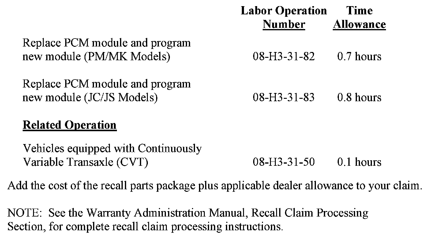 Recall - PCM Replacement/Software Update: Overview
