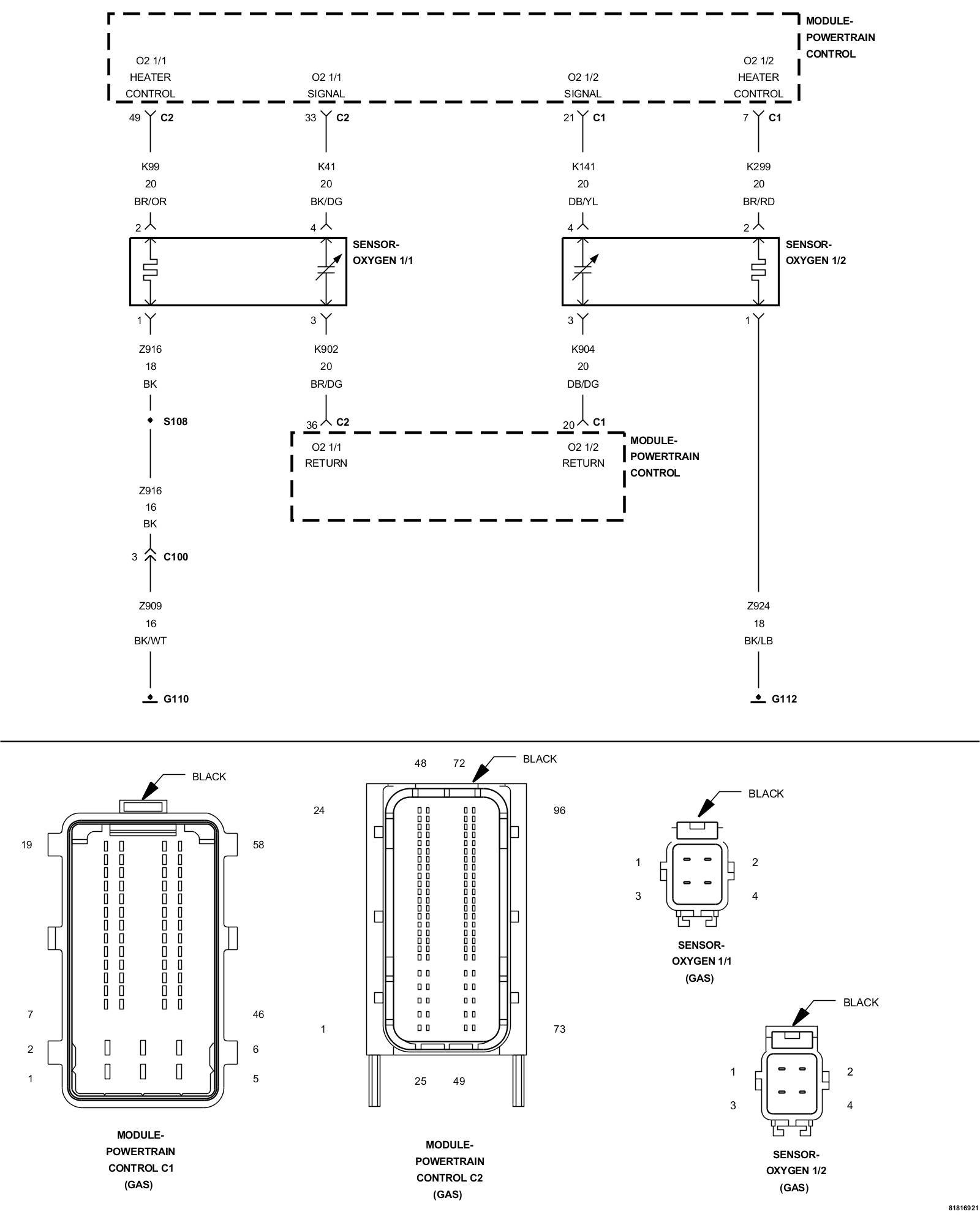 1. Using the wiring diagram/schematic as a guide, inspect the wiring and connectors between the O2 sensor and the PCM.