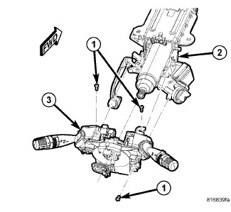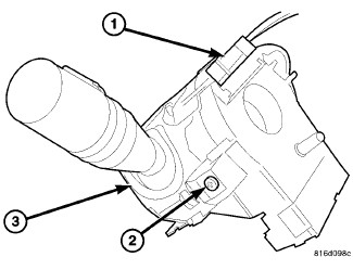 1. Remove the left multi-function switch stalk retaining screw (2).