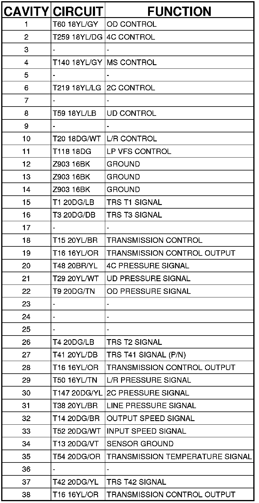 Connector C4 (RFE) - (INJECTOR) 38 WAY