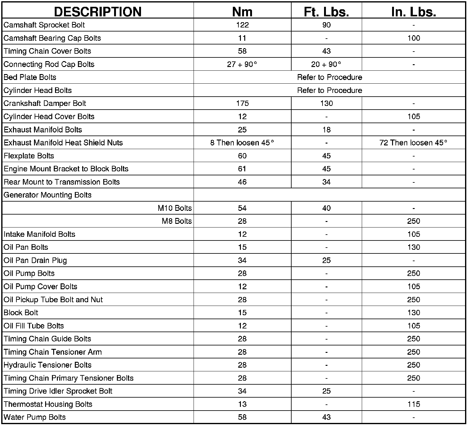 Engine Torque Specifications