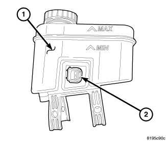 The fluid fill level is indicated on the side of the master cylinder reservoir (1).