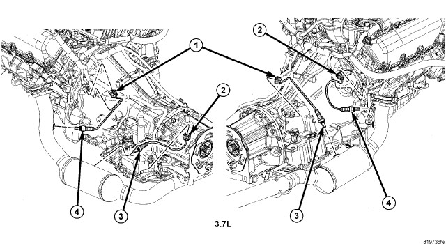1. Install O2S sensor (3) or (4). Tighten to 41 Nm (30 ft. lbs.).