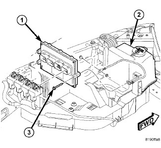 1. Install PCM (1) and three mounting screws (3) to vehicle.