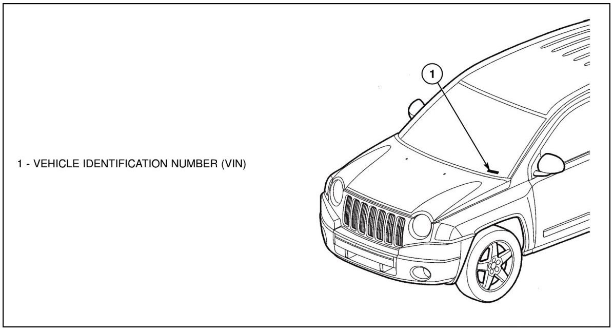 VEHICLE IDENTIFICATION NUMBER DESCRIPTIONThe Vehicle Identification Number (VIN) can be viewed through the windshield at the upper left corner of the instrument panel, near the left windshield pillar. The VIN consists of 17 characters in a combination of letters and numbers that provide specific information about the vehicle. Refer to VIN Code Breakdown Chart for decoding information. To protect the consumer from theft and possible fraud the manufacturer is required to include a Check Digit at the ninth position of the vehicle identification number. The check digit is used by the manufacturer and government agencies to verify the authenticity of the vehicle and official documentation. The formula to use the check digit is not released to the general public.