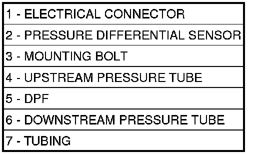 6. Remove pressure differential sensor (2) and tubing (7) from vehicle.