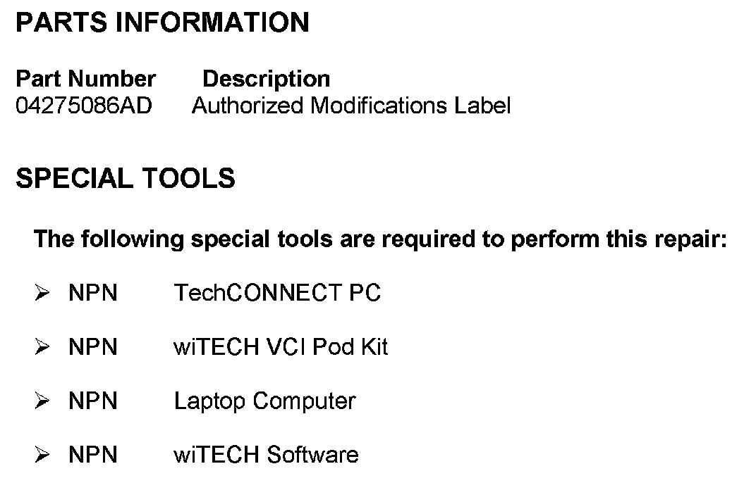 ^ To correct this condition, the Powertrain Control Module (PCM) must be reprogrammed (flashed).