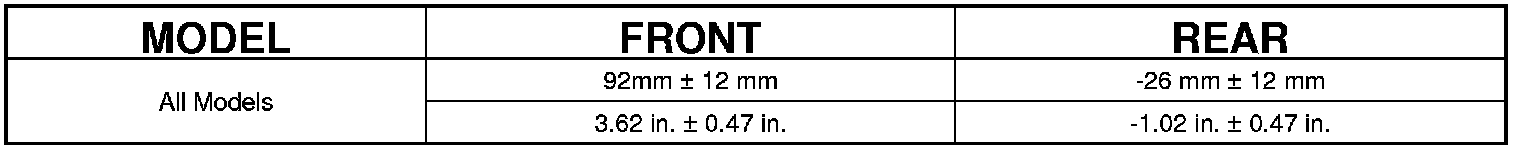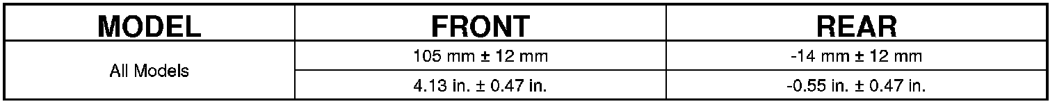 NOTE: Prior to reading the curb height measurement, the front and rear of the vehicle must be jounced to settle the suspension. Induce jounce by pushing down on the center of the bumper (fascia), using care not to damage the vehicle, moving the vehicle up and down, gradually increasing the suspension travel with each stroke. Release the bumper at the bottom of each stroke, repeating this action several times. Perform this to both front and rear suspensions an equal amount of times.