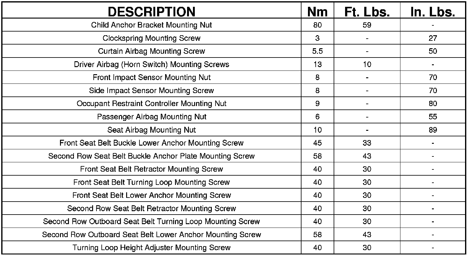 TORQUE SPECIFICATIONS