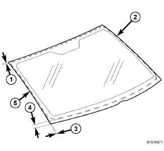 3. Locate the bead of adhesive onto the primed windshield surface (2) as indicated.