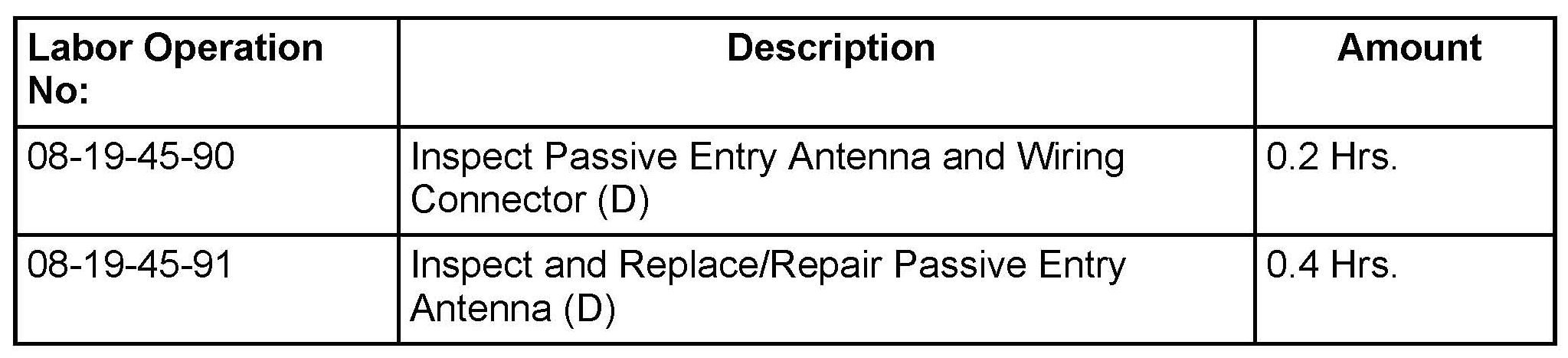 This Bulletin involves removing the liftgate scuff plate, inspecting the passive entry antenna, and replacing the antenna if necessary.