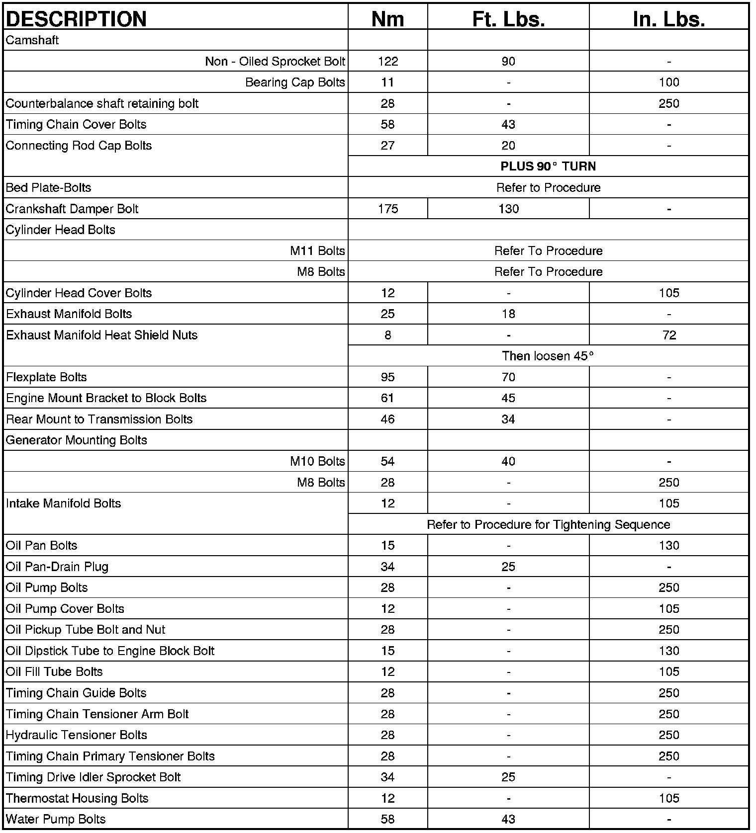 Engine Torque Specifications