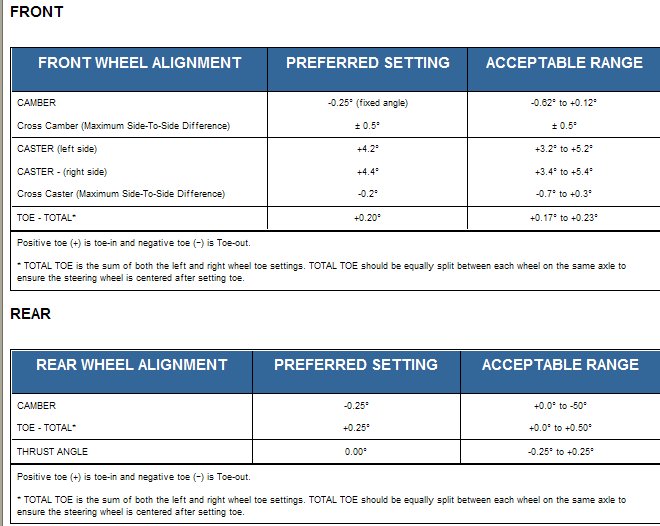 All wheel alignments are to be set with the vehicle at curb height.