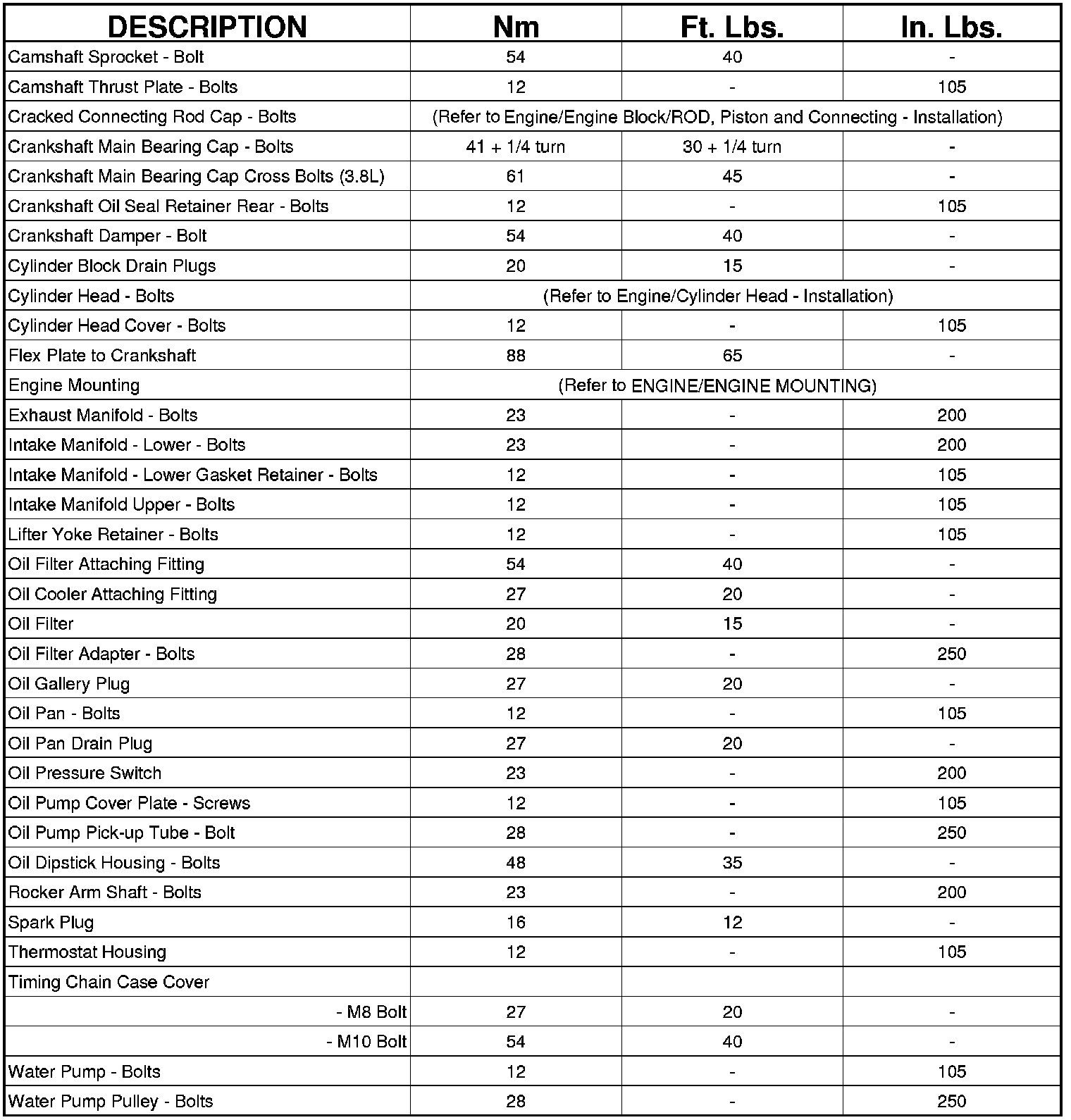 Engine Torque Specifications
