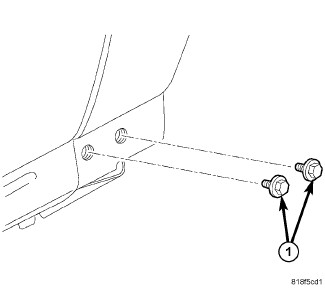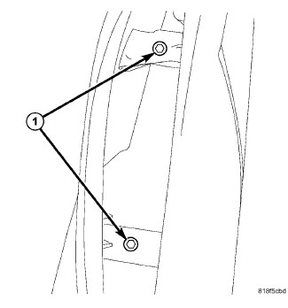 4. Loosely install the two inner bolts (1) at the rear of the wheel well and adjust the fender to the correct gap and flush dimensions, .