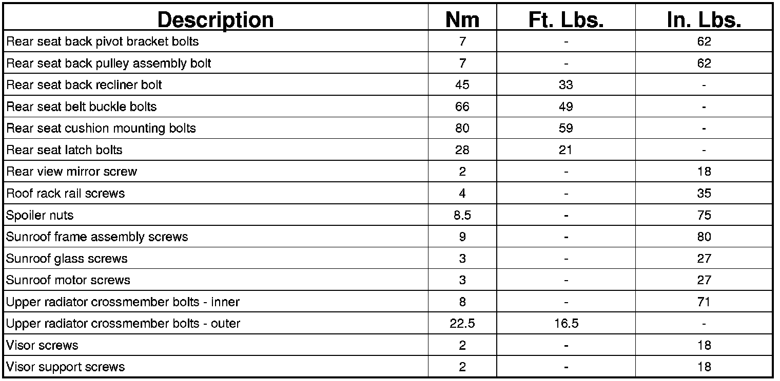 Body and Frame: Specifications