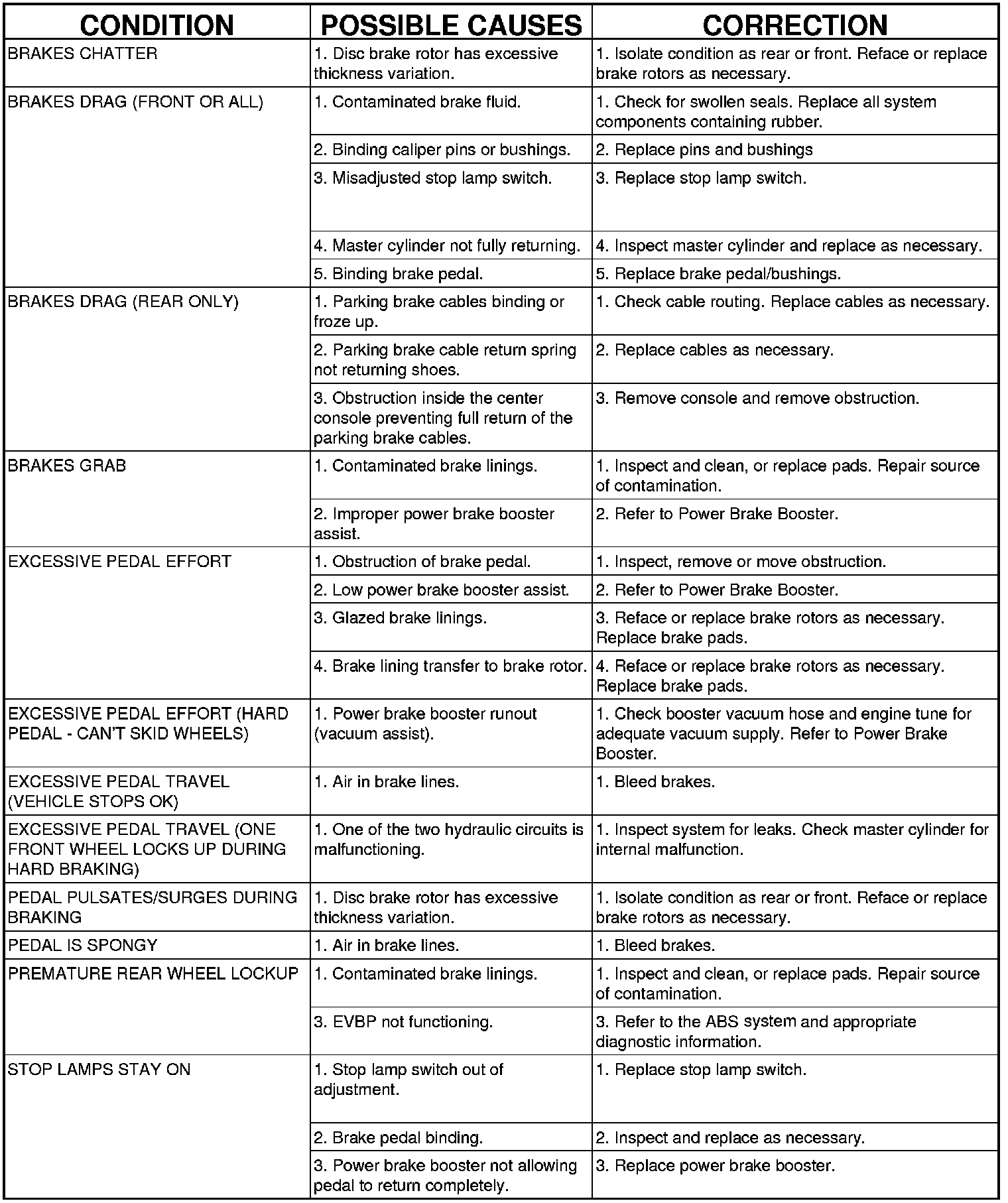 DIAGNOSIS AND TESTING - BASE BRAKE SYSTEM DIAGNOSIS CHARTS