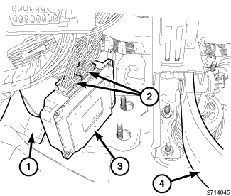 5. Slide the TCM off the mounting studs (1) and remove from the vehicle.