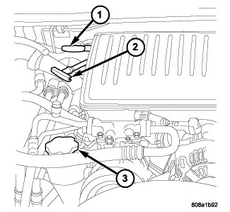 The engine oil level indicator (Figure 1)(1) is located at the right rear of the engine on the 3.7L/4.7L engines.