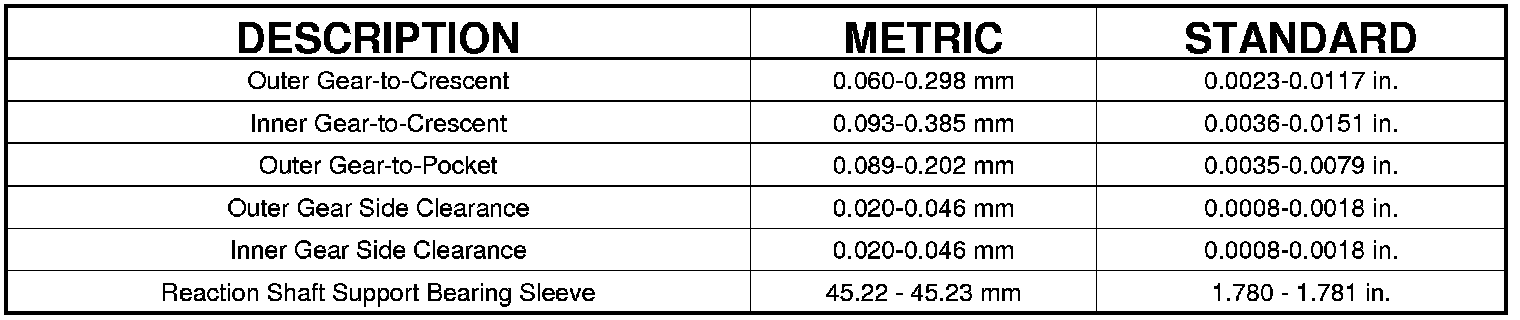 OIL PUMP CLEARANCES