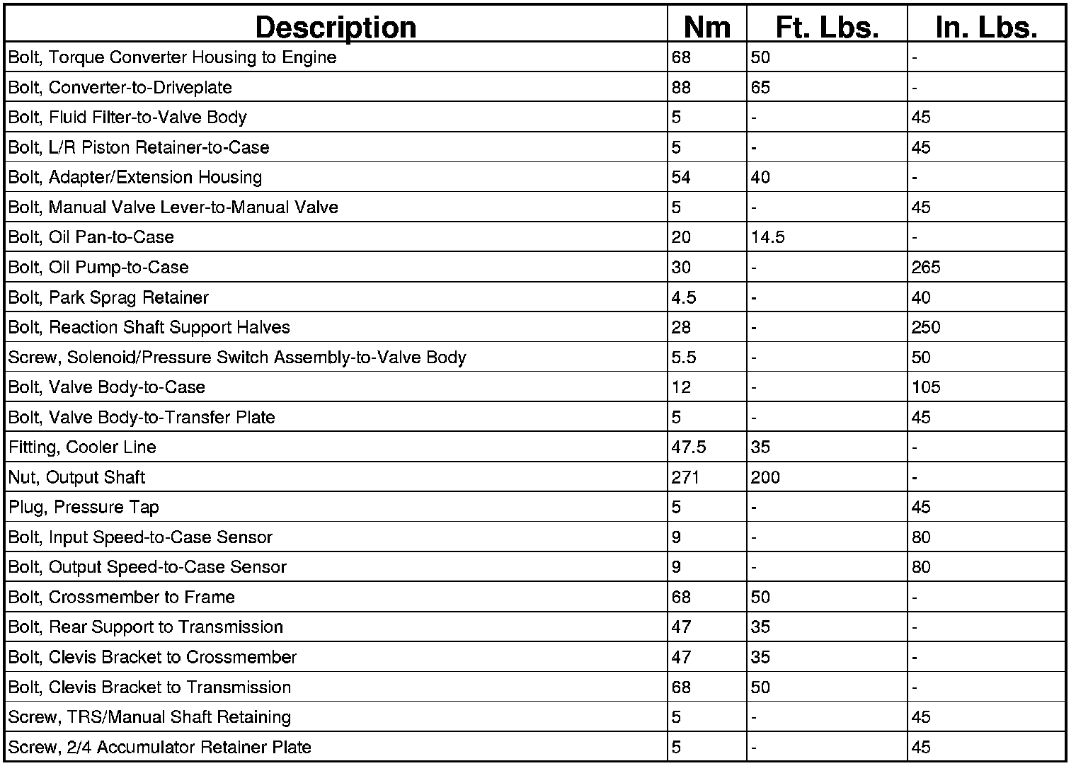 TORQUE SPECIFICATIONS