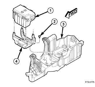 4. Position the TIPM positive cable (4) onto the mounting stud and install the retaining nut (2). Tighten the nut to 9 - 11 Nm (80 - 100 in. lbs.).