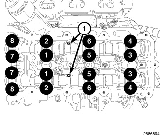 Install the camshaft bearing caps and hand tighten the retaining bolts 2 Nm (18 in. lbs.).