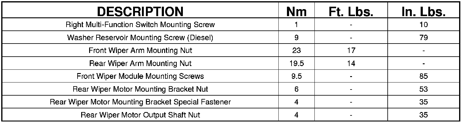 Wiper and Washer Systems: Specifications