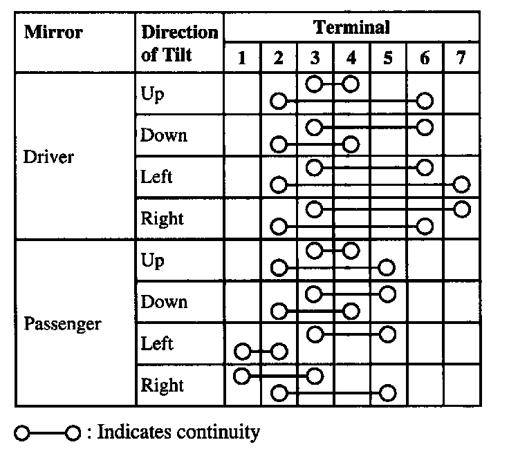 3. If continuity is not as specified, replace the power mirror control.