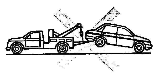 a. Do not tow vehicle backward with driving wheels on the ground. This may cause internal damage to transmission.