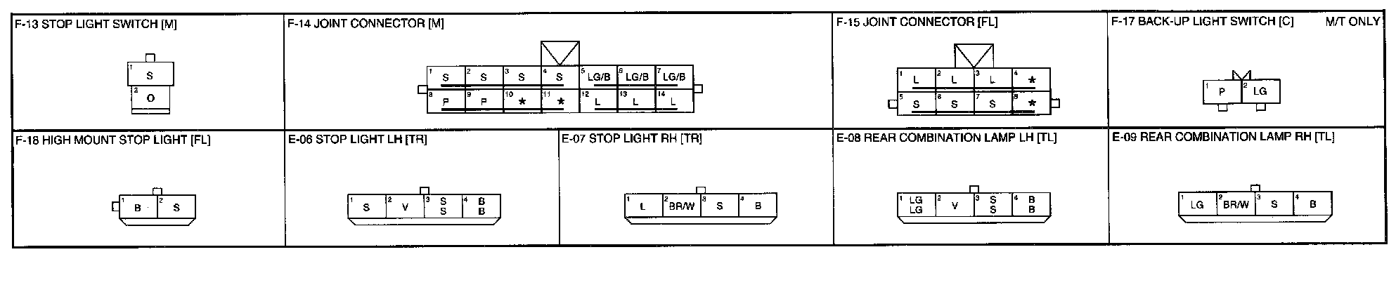 F-2 - Stop Lights, Back-Up Lights Connectors: