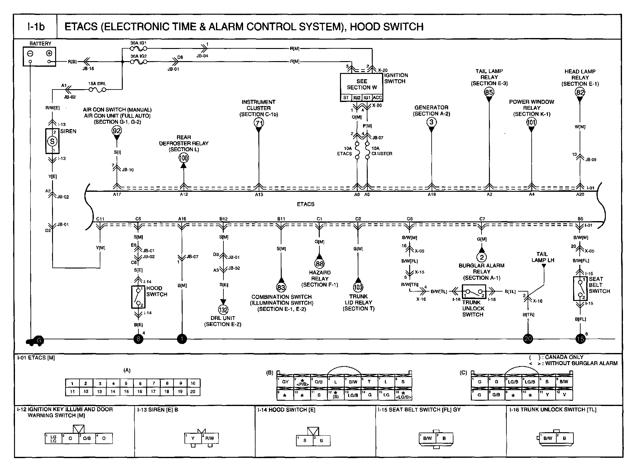 I-1b - ETACS (Electronic Time & Alarm Control System), Hood Switch Circuit: