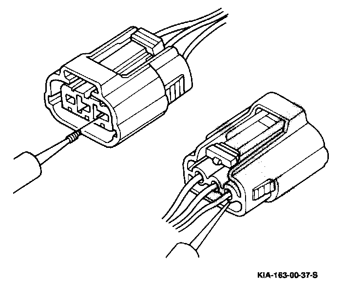 NOTE: Attach as all gauge wire (straightened paper clip) to the tester probe to prevent damage to the connector terminal. Do not damage the terminal when inserting the tester lead.