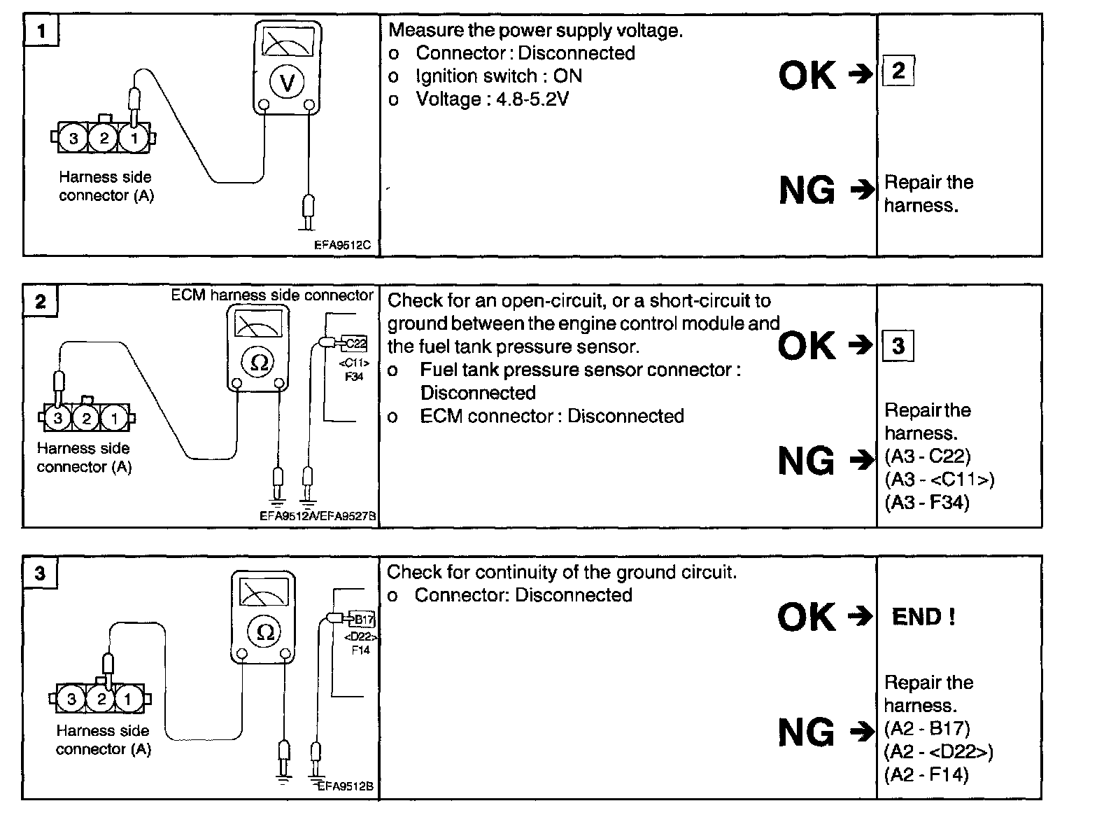 Home >> Kia >> 2001 >> Optima L4-2.4L >> Repair and Diagnosis >> Powertrain Management >> Computers and Control Systems >> Fuel Tank Pressure Sensor >> Testing and Inspection