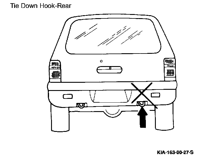 - Do not tow the vehicle from hook loops. Hook loops are designed only for transport tie-down. If hook loops are used for towing, vehicle body will be damaged.