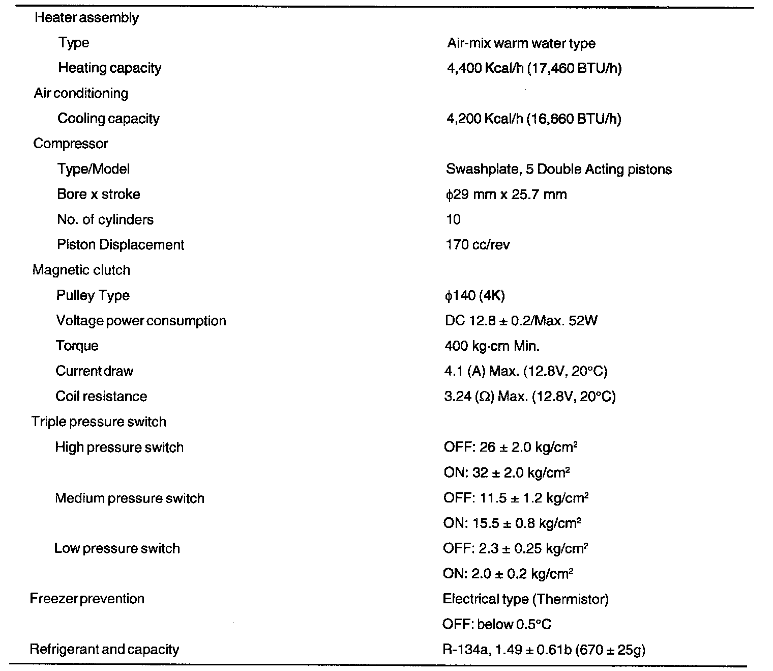 Specification ( R - 134A ):