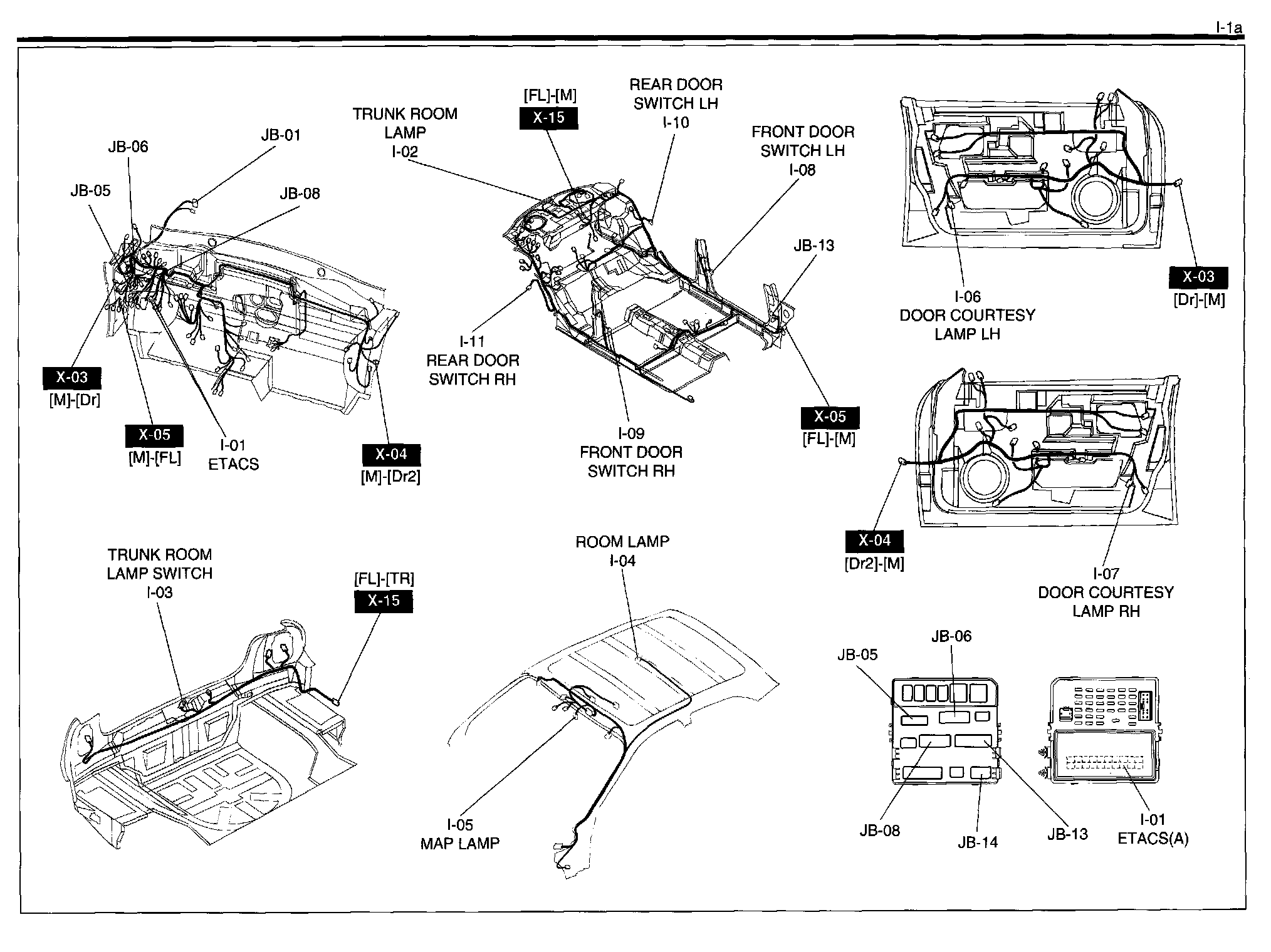 I-1a - Room Lamp, Door Courtesy Lamp, Trunk Room Lamp, ETACS (Electronic Time & Alarm Control System) Harness/Connector Symbols: