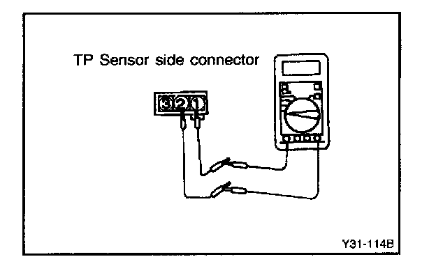 6. Slowly turn the throttle position sensor clockwise until you find a point at which there is no continuity between terminal 1 and 2. Then, tighten the throttle position sensor mounting bolt securely.