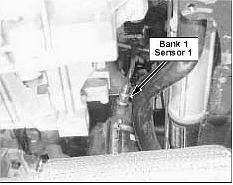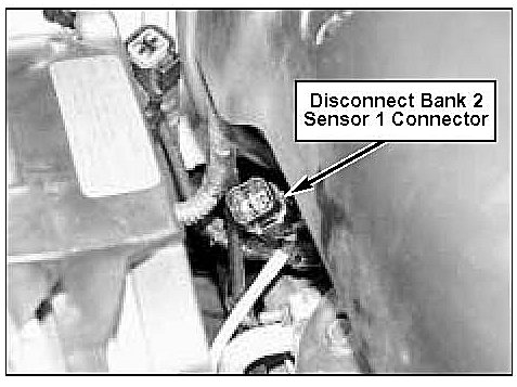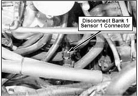 3. Disconnect bank 1 sensor 1 connector at rear corner of right cylinder head and remove connector from bracket.
