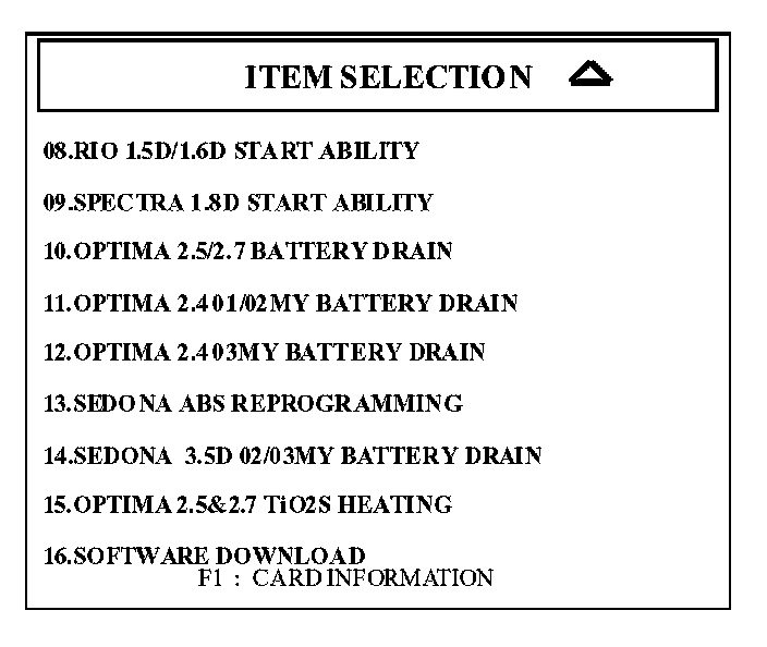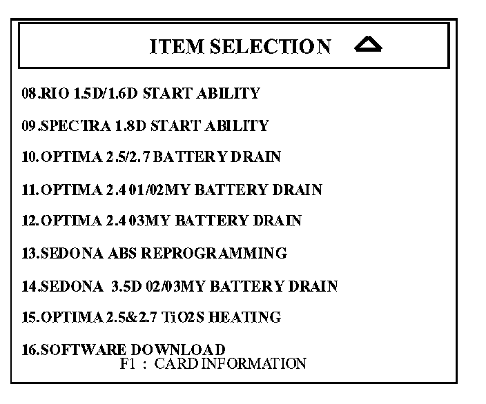4. Select option that matches the model year and engine, and press the "ENTER" key.