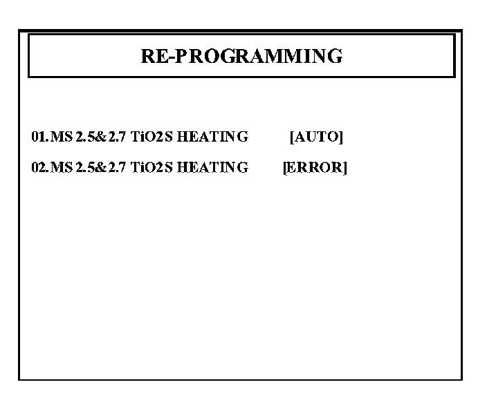 3. Select "02. MS 2.5&2.7 Ti025 HEATING [ERROR]" and press the "ENTER" key.