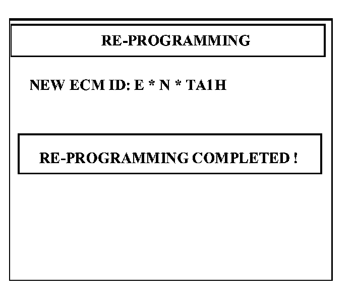 9. When "REPROGRAMMING COMPLETED" message is displayed, turn the Hi-Scan Pro off and disconnect from vehicle. Turn the ignition key to the "OFF" position for 20 seconds, start engine and verify normal operation.