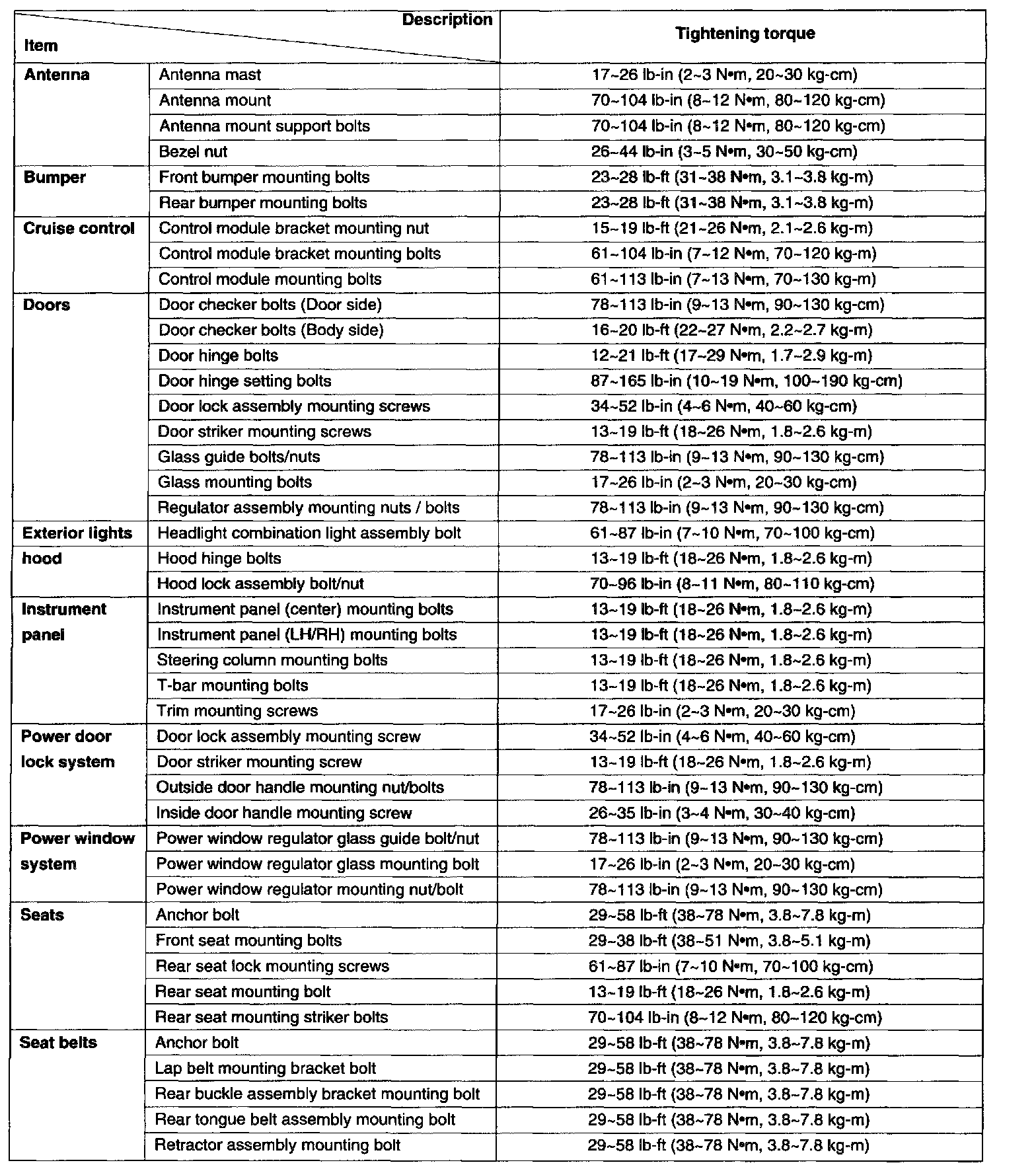 Tightening Specifications Part 1: